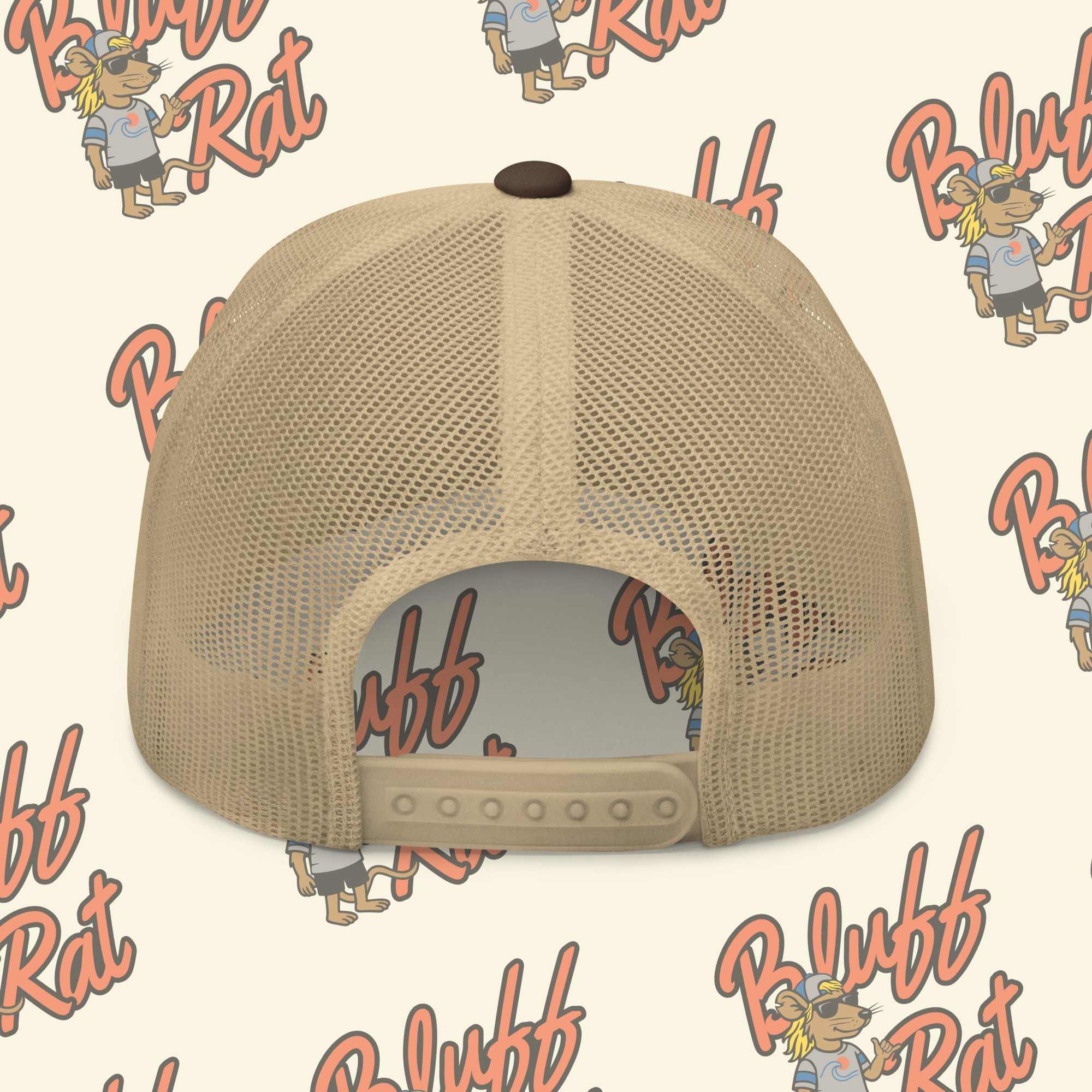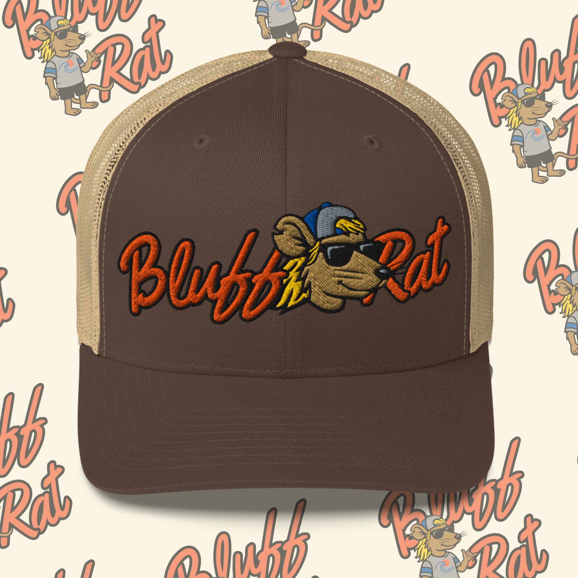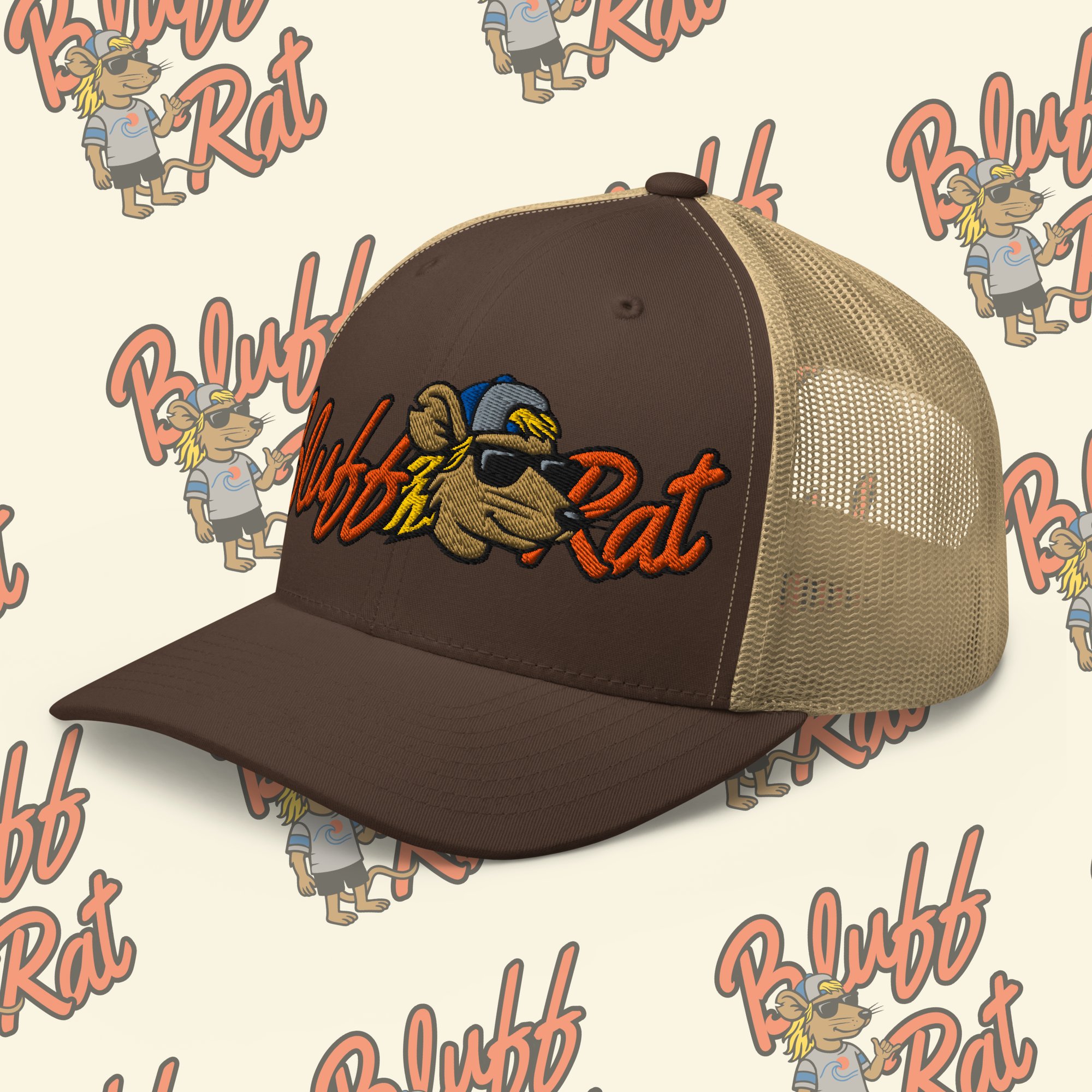- Bold 3D puff embroidery of Bluff Rat profile and stylized Bluff Rat text